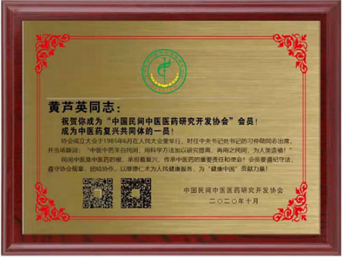 2020年,为更好地为推进中医药复兴,加入“中国民间组织“中国中复汇开发协会”成为会员;