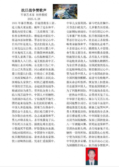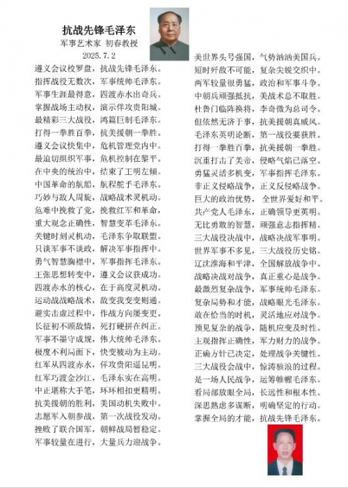 初老师写下了太多抗美援朝之歌和战疫之歌!