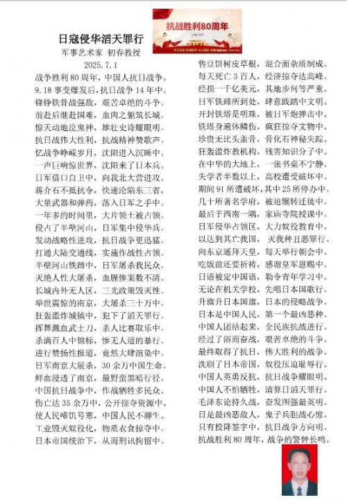 八十年沧桑巨变,八十年精神永存。在纪念中国人民抗日战争暨世界反法西斯战争胜利80周年的庄严时刻,我们以艺术之名,开启一场穿越时空的对话。