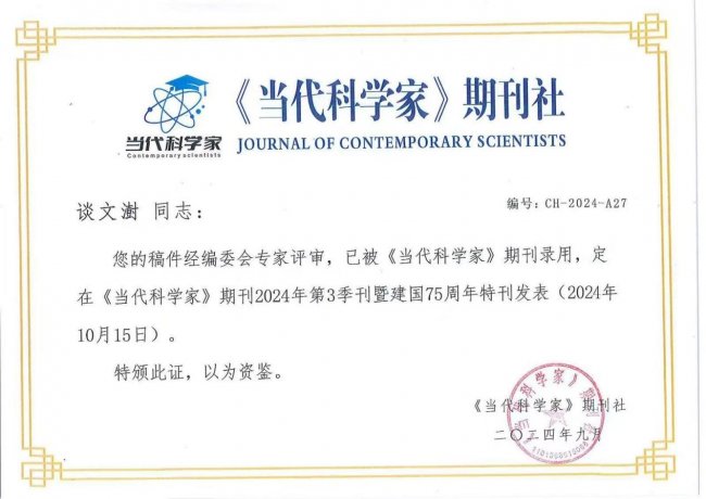 附:谈文澍教授主要荣誉