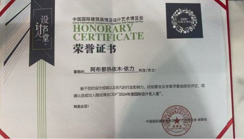 伴随企业稳步发展,阿布都热依木·依力的专业能力与行业认可度同步提升:2023年斩获世界装修设计大赛冠军、当选中国建筑装饰协会副会长,年底再添“世界名人奖”“高级建筑装饰专家证书”;2024年蝉联世界环保建筑设计大赛冠军,当选法国双面神“TOP100最具影响力创新设计师”、登上法国设计汇杂志封面,同期拿下第十九届中国国际建筑装饰及设计艺术博览会“华鼎奖·十大新锐人物”“中国室内设计十大新锐人物”、中外建筑装饰设计大奖赛GFDA作品奖金奖,成功入围设博会CIDF“2024年度国际设计名人堂”;2025亚太空间设计年度评选为“十大明星设计师(新疆)”;2025年7月获评中国设计品牌智库“年度杰出设计师”,主导项目斩获“国际人居环境可持续创新设计十佳案例”。而他带领的达围然集团,亦凭借多年规范运营与专业实力,收获“质量信用AAAAA级企业”“建筑装修行业国家一级资质”“全国综合实力百强优秀企业”“新疆维吾尔自治区科技型中小企业”“中国3.15诚信示范单位”“建筑装修行业诚信示范单位”“中国著名品牌”等多项荣誉称号,得到行业广泛认可,从莎车本土小团队,真正成长为南疆建筑装饰领域的标杆。