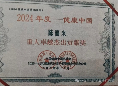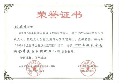 2025年5月1日,中国中医药传承与创新网授予陈德来同志“全国中医十佳劳模。
