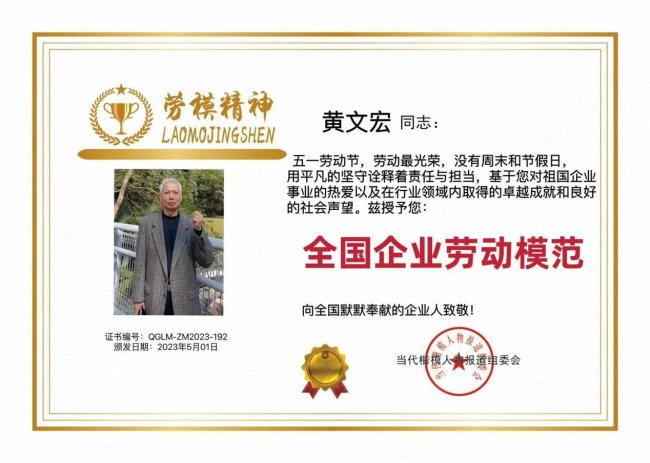 黄文宏的创新实践赢得了社会各界的广泛认可,一项项荣誉不仅是个人的勋章,更是行业对其贡献的肯定: