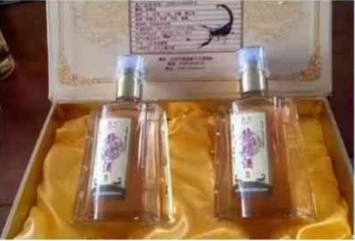 7、“龙蝎酒”选用优质粮食酒为基酒,配伍蝎毒、穿山龙、虫草、大枣、枸杞等多味中药材,精心加工而成,具有祛湿、通络、消炎、止痛、抗病毒、抗衰老等功能,已获国家发明专利。1999年获全国食品博览会金奖,2004年人民大会堂中国农业经济发展论坛既重点项目推广大会指定用酒和重点推荐产品,2008年中 央机关老干部康乐文化指导中心指定为共和国老部长、老将军特供酒,2009年12月龙蝎酒被第四界驻华大使年会指定用酒,2010年、2011年商务部中外项目交流会指定用酒,2012年中国品牌质量盛典指定用酒。