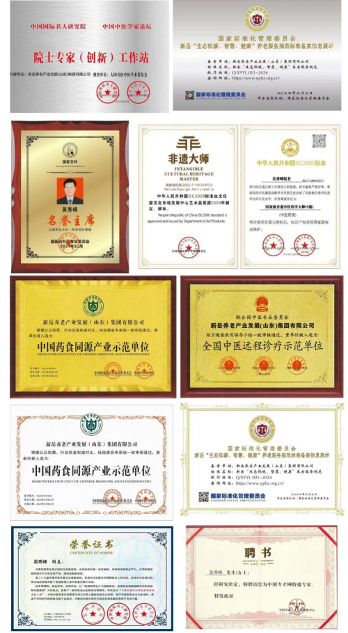 2018中国养老领域自主创新企业,中国自主牌品十大领军企业,中国国际品牌100强,养老产业国际十大影响力品牌,企业信用评价AAA级信用企业,中国养老产业指定合作品牌,养老创新产业国际合作示范基地、战略合作单位,中央机关老干部文化交流中心——文化艺术养老示范基地、中国国际品牌100强,
