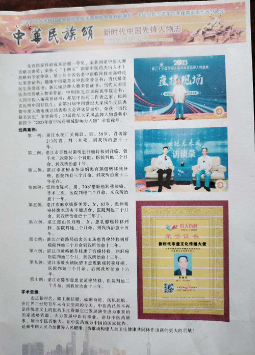 李救民见证文肿瘤是人类最大天敌,也是世界医学的难题。现在肿瘤的发病率猛速发展,全国每年发病率高达千万人。李救民立志要攻破肿瘤为民解难,多年他一直致力于发扬传承传统中医,改良创新发展中医,让越来越多的人了解中医,相信中医,喜欢中医。获得了各级政府和患者的高度赞誉和一致好评。
