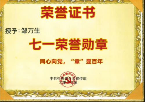 邹万生先生曾获荣誉