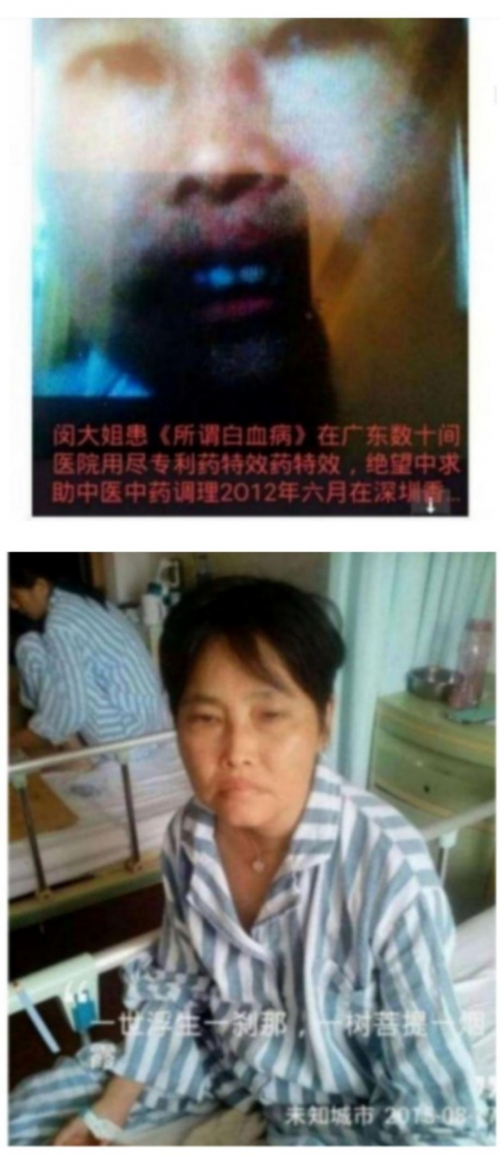 闵姐在深圳某企任职,例行到贵单位指定的医院检查,抽血,活检,化验确诊是得了什么白血病,糖尿病即执行现代化的各种各样治疗近三年,花耗巨资越治越重,头痛欲裂多年的长期失眠受尽折磨,出门要带上一药箱,每天要口服十多种什么进天价止痛药,如同(鸦片,及降压药降糖药胰岛素注谢要准时不能有误,否则时有不幸。)