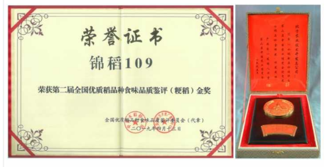 二项获国家优质米水稻品种金奖证书、奖牌。