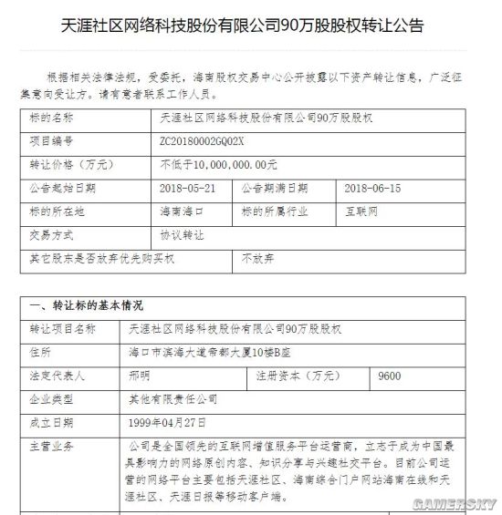 近日,有网友贴出了一份天涯社区股权转让公告,公告显示受委托转让天涯社区网络科技股份有限公司90万股股权。虽然转让方海南信息产业创业投资基金只是天涯的一个小股东,但是这一纸公告还是引发了网友们集体的回忆