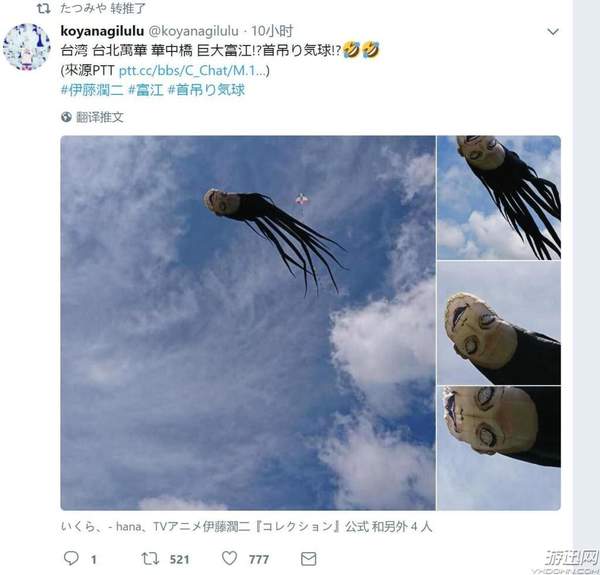 富江是日本恐怖漫画家伊藤润二笔下的经典角色,大家都不会陌生,这个绝色美女是很多人挥之不去的噩梦。近日有台湾网友发现空中漂浮着富江风筝(气球?),非常的惊悚。 从图片上看到这个富江风筝制作的相当还原