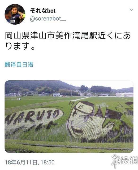 很多动漫作品的粉丝群体中都有不少能人,他们展示真爱的方式一般都是与众不同,常常通过一件件让人惊叹的作品展示自己的爱。近日有日本网友发现有人在一片稻田中“绘制”了一副巨大的漩涡鸣人画像,鸣人的面部表情等
