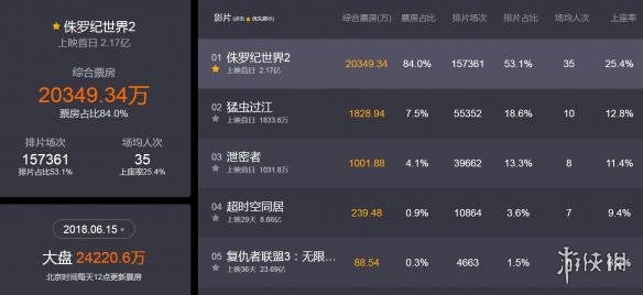 《侏罗纪世界2》昨日正式登陆内地院线上映,而根据猫眼票房专业版的数据显示,电影在内地首日票房达到了2.17亿,毫无悬念霸占了票房榜首位置。不知道大家都去看了吗? 作为对比,2015年《侏罗纪世界》在内