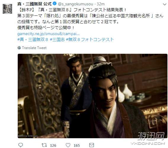 今天,《真三国无双8》官方公布了摄影大赛第三回主题“隐居处”的获奖作品,获奖者是日本玩家“陳公台と巡る中国大陸観光名所さま”,同时他也是第一回比赛的冠军。 除了第三回获奖作品外,还有第二回“战斗”
