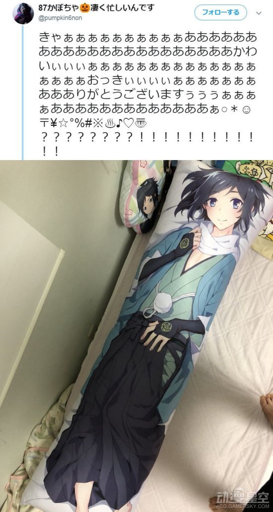 “宅男”这个群体老是被认为是体能不足,战斗力只有5的渣渣。不过在面对自己心仪三次元角色和周边的时候他们的战斗力绝对不低。近日一位日本的宅男就在推特上分享了他拿到心仪抱枕时候的惊人动作,他抱着抱着高高跳