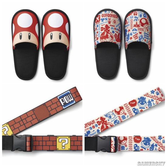 任天堂公布了16款以《超级马里奥》为主题的旅行周边,其中包含行李箱罩、拖鞋、护照夹、眼罩、头枕、手提包等旅行中非常实用的产品。这些周边将于今年夏天在日本各地的杂货店、家电店、网店进行销售。拖鞋:220