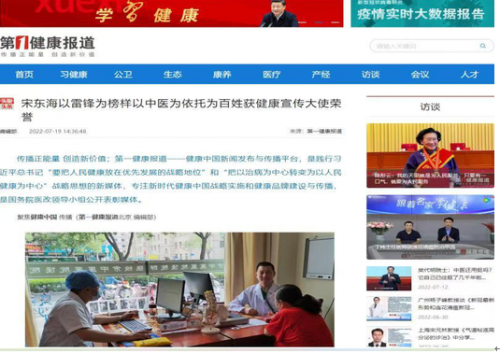 从治病助人到养老安康 党的二十大报告指出:健康是促进全面发展的必要前提,是经济社会发展的有力保障,是民族昌盛和国家富强的重要标志,也是广大人民群众的共同追求。新时代的健康是身体与心灵上的健康。宋东海出身中医世家,四代行医。他从小耳目熏染:对中医学充满了热爱。最初是在父亲的诊所看病后来又在村医疗卫生所工作20年。