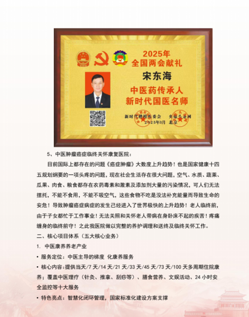 “对未来的真正慷慨,就是把一切献给现在。” 这是宋东海的人生语录,也是他一生的行动写照。他的付出,如默默铺路的基石,沉淀成了推动基层康养事业发展的力量;他的坚守,如黑夜中的星光,照亮了无数弱势群体的前行之路。在 “十五五” 康养养老产业迎来高质量发展的新机遇下,宋东海的探索与实践,为基层康养事业发展提供了宝贵的样本,他以中医仁心为根,以智慧养老为翼,以奉献精神为魂,在康养养老的道路上步履不停。