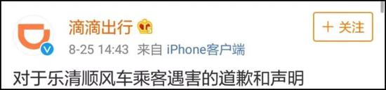 8月25日,温州20岁女孩乘坐滴滴顺风车遇害。下午,滴滴做出回应。