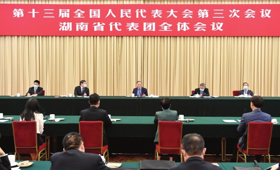 5月24日,国家副主席王岐山参加十三届全国人大三次会议湖南代表团的审议。图/新华社