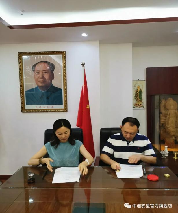 中湘农垦董事长陈莹女士与中国数字乡村协同创新平台依托单位下属中农数科(北京)科技发展有限公司董事长寇博先生签订战略投资协议,双方达成深度合作。