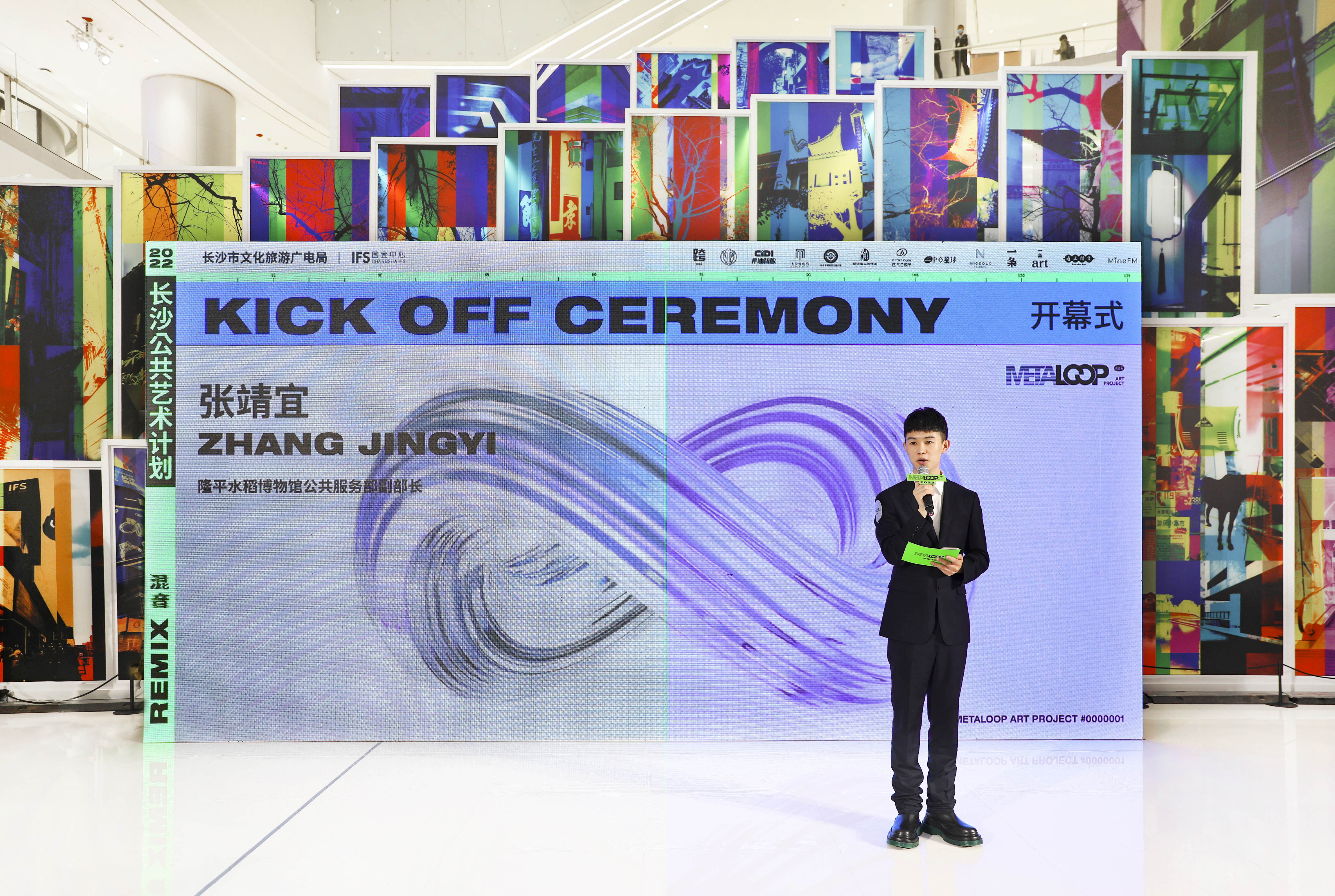 5月15日,由长沙市文化旅游广电局指导,长沙IFS主办,KUÀ STUDIO企划承办,联合当地4家博物馆及文化组织,4家知名企业及科技公司共同发起的长沙首个大型公共艺术计划METALOOP“混音”在长沙IFS圆满启幕。长沙市委宣传部副部长、长沙市文化旅游广电局党委书记、局长郭润葵受邀出席并致辞表示:“本次2022长沙公共艺术计划,通过当下艺术最为活跃和前沿的表现形式,探讨了元宇宙时代下技术变革与艺术实践等层面议题,并推动城市落实了加快数字化发展、建设数字中国的规划与科技创新可持续全面发展的战略,向世界彰显出一个文化、艺术、科技的国际化新美学城市形象“,METALOOP“混音”项目艺术总监、策展人董冰峰也通过线上的形式发来祝贺预祝盛典圆满成功。同时,长沙IFS推广及市场部总监Idy Tsang、长沙IFS副租户服务及外联总监王瑛、METALOOP“混音”项目企划人彭欣馨、希迪智驾联合创始人兼总经理马潍、国家杂交水稻工程技术研究中心兼湖南杂交水稻研究中心办公室副主任罗琳、长沙市博物馆信息中心主任浦英晖、长沙市非物质文化遗产保护中心副主任朱鹏、隆平水稻博物馆公共服务部副部长张靖宜、谢子龙影像艺术馆执行馆长卢妮、远大科技集团副总裁兼远大芯建数字科技公司总经理张贤铭、P8星球创始人黄立亭、长沙尼依格罗酒店行政助理经理唐亚航莅临现场,共同献上对本次艺术计划的展望和期许。